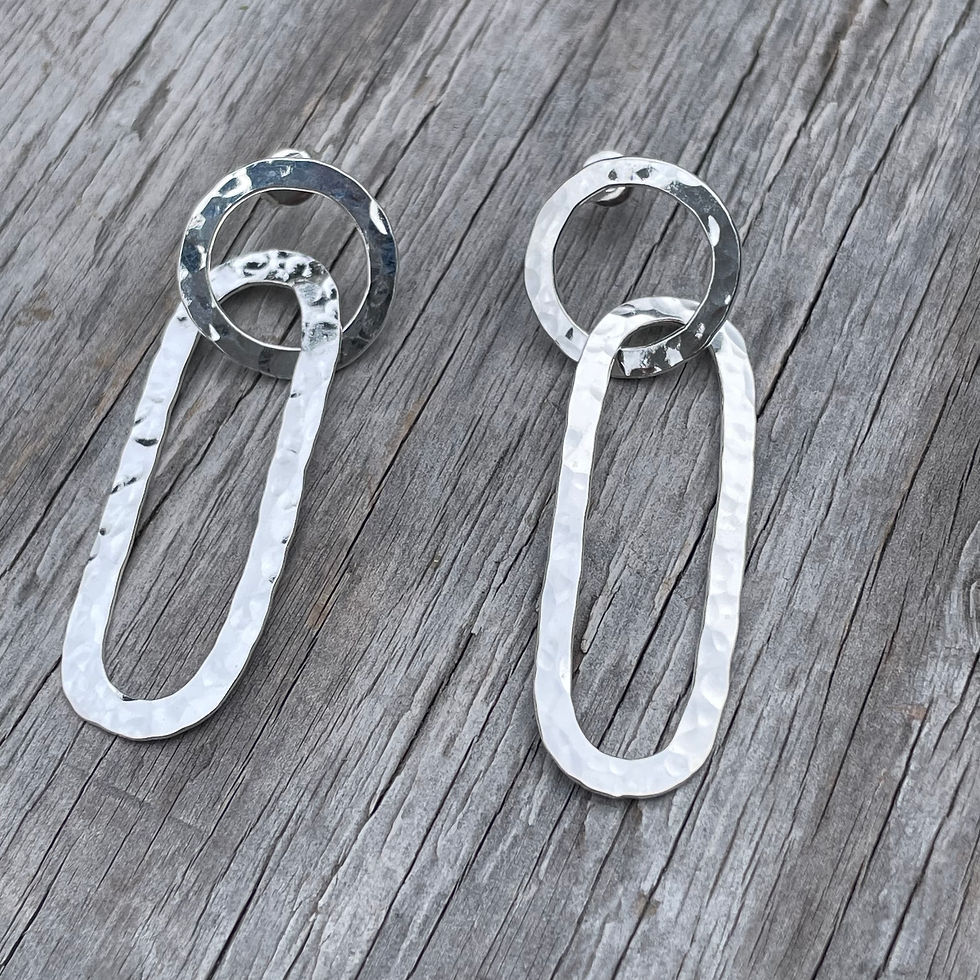 Silver hammered long oval stud drop earrings