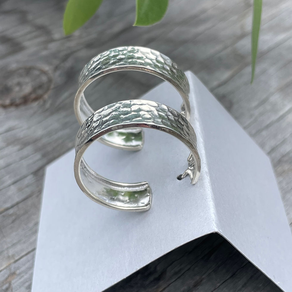 Silver hammered round open loop earrings