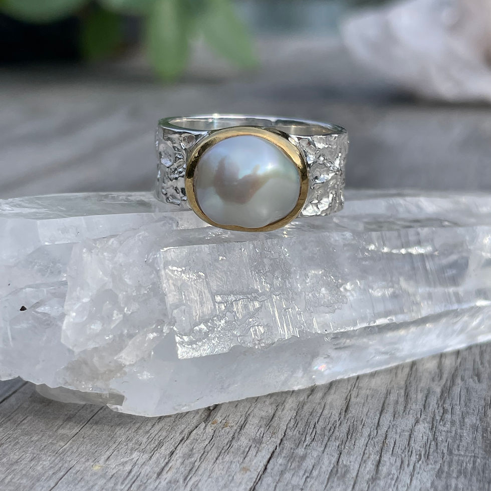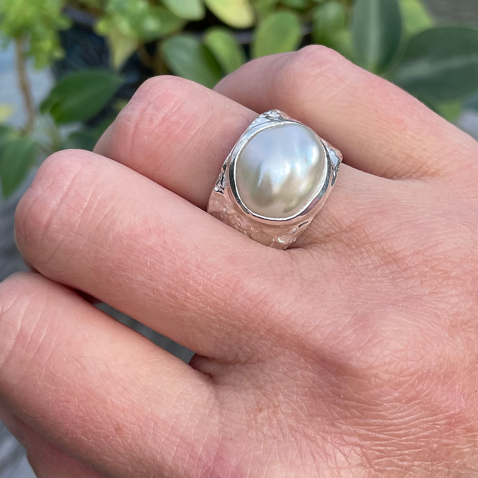 Marija Designs Grey Freshwater Pearl Wide Band Ring